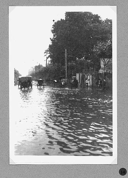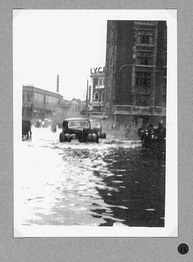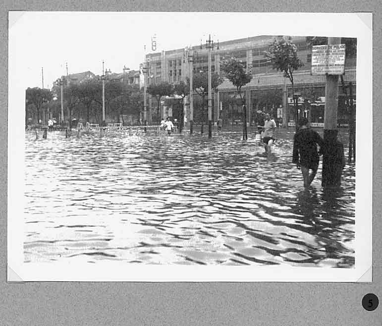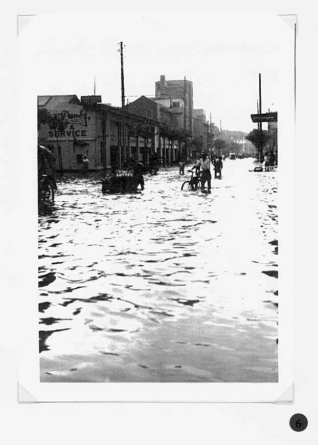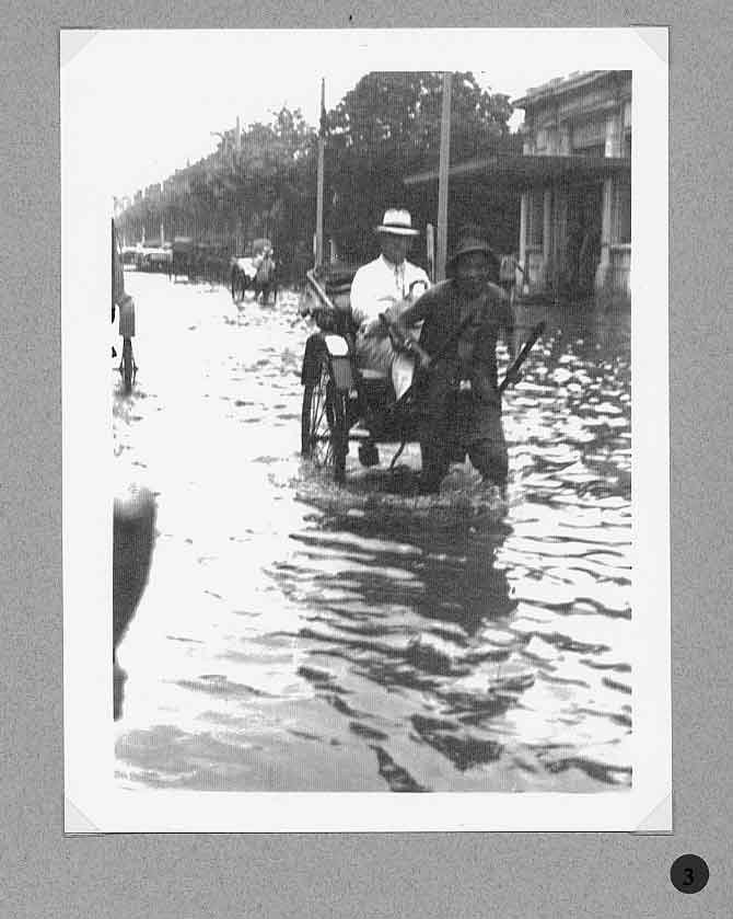 A report in the Bullelin-Igud Yolzei Sin by Sonny Isaacs, dated September-October 2002, recalling the typhoons in Shanghai, prompted yours truly to look for photographs hidden among my Hongkew memorabilia depicting this kind of devastating meteorological event. Floods, typhoons, and tides are the greatest threats from nature to Shanghai as it sits on the tip of the Yangtze Delta. When the periodic, typhoon, also referred to as a tropical cyclone, hits Shanghai, usually between July and September, the Whangpoo River overflows and the streets become a flowing river over two or three feet deep. The photograph in figure one, taken in 1939, shows a flooded street in Hongkew. During the days in the Jewish Ghetto, water came gushing into dwellings of the low, lane-type houses, and if this was not enough the poor physical condition of Jewish refugees as the war continued became a potential for contracting one of many enteric type diseases prevalent at the time. Typhoons, the way we Shanghailanders remember them, knew no boundaries and caused devastating affects in all three separate municipal entities; the International Settlement, the French Concession and Greater Shanghai. The following photographs where taken in the early 30‘s prior to the Sino Japanese War. They were photographed in the French Concession, which started approximately one mile west of the Bun4 and south of Nangking Road. Figures two thru seven show the popular Route Cardinal Mercier flooded by a typhoon. It was also the street where the Lyceum Theater was located (see figure eight thru eleven). Figures 12 thru 13 illustrate a program of a comedy performance given in January 1943 at the Lyceum Theater. It was only a couple of months later when the Japanese Proclamation came into affect restricting Jews that arrived in the late 30‘s to a designated area. The theater then became off limits to this group of Jewish refugees. In figures 14 thru 15 we see a view of Ave. Joffre flooded by another typhoon. Figure 16 show the same condition at Ave. du Roi Albert after a typhoon. Although we in the United States also experience natural disasters, including torrential rain and tornados, Shanghailanders today are in better physical condition and in a more secure environment to protect themselves from such impending and unexpected occurrences. |
