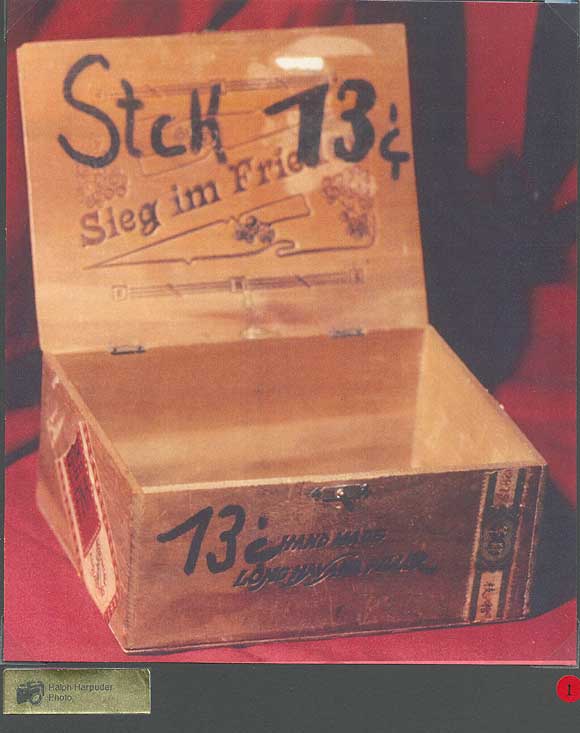 sold for 13 cents per cigar at the Heim canteen, as crudely marked on the