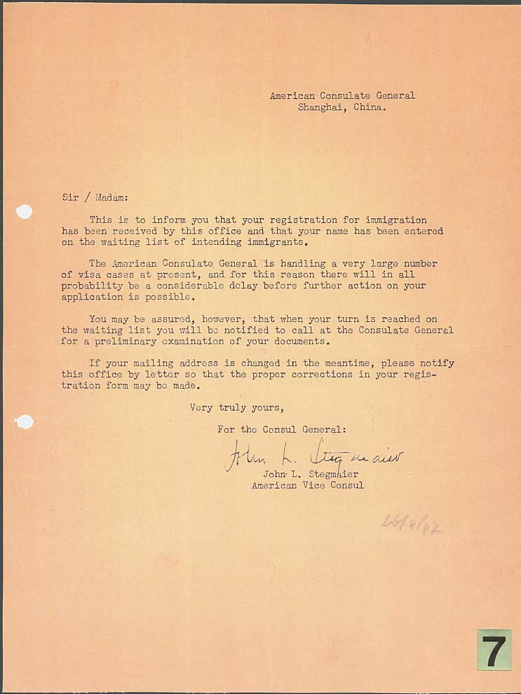 the club‘s newspaper in June of1947. Waiting to be called for an interview by the consul was not always easy, and often caused headaches and anxiety. A comical skit recited by Gerhard Gottschalk during a night-club performance in Shanghai explains it in the following way: