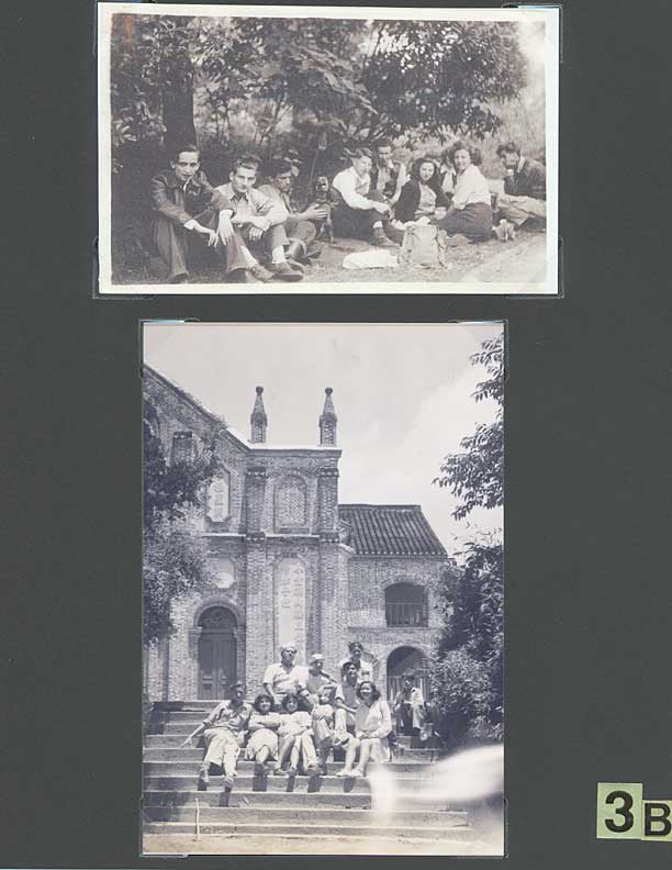 photo made in 1946 of a group of refugees in their late teens enjoying their