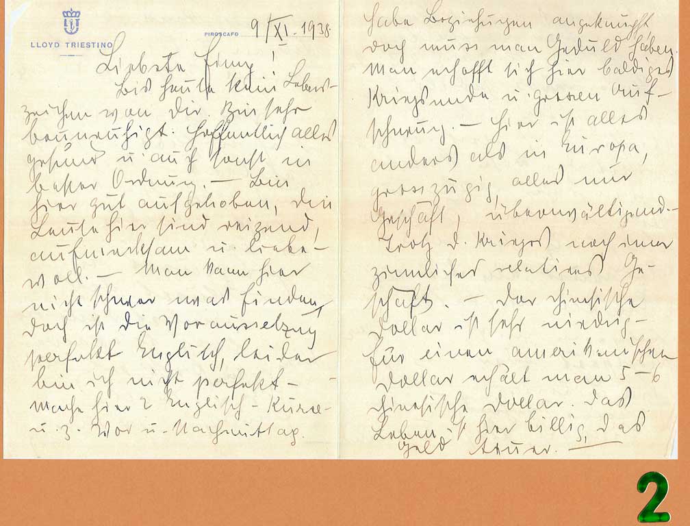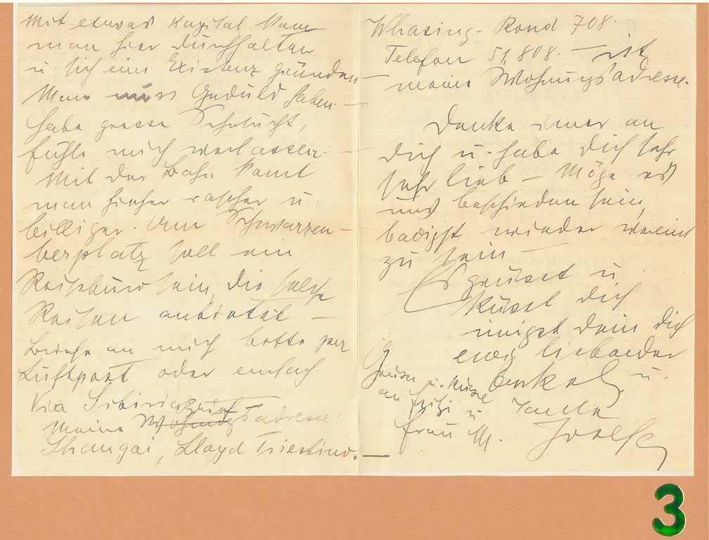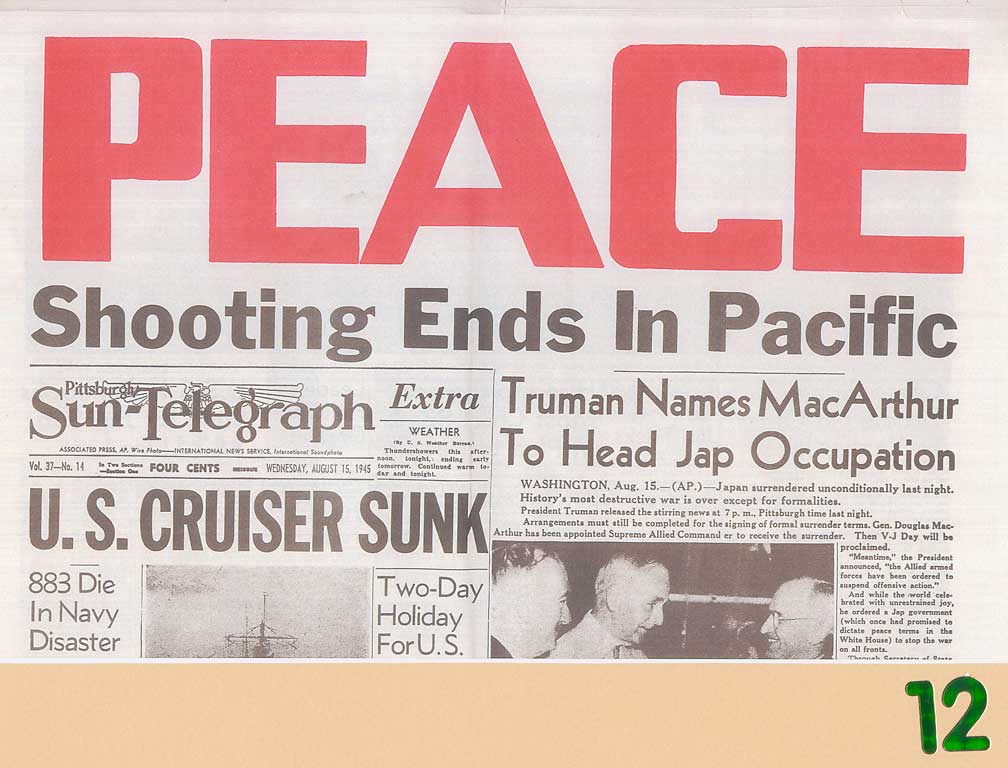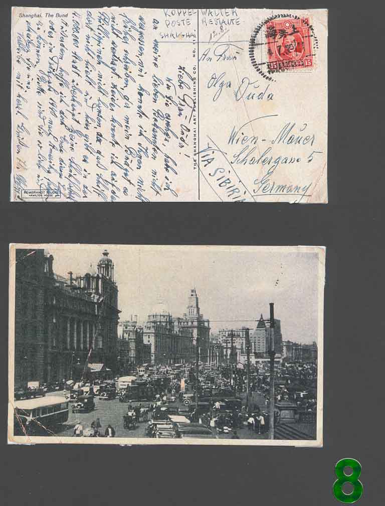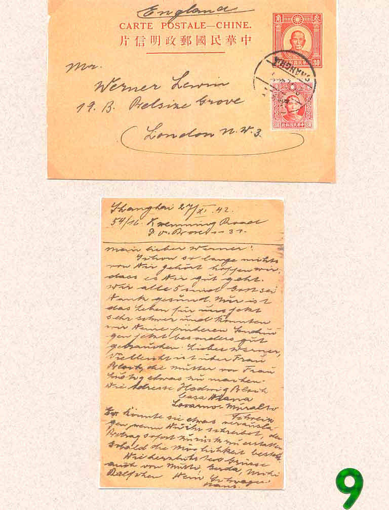 A Pivotal Day for Shanghai Refugees By Ralph Harpuder Emigration of stateless Jews from Nazi occupied lands to Shanghai began around 1938. An envelope mailed to a stateless person in Vienna from the Committee for the Assistance of European Jewish Refugees in Shanghai-Immigration Department, censored by the Nazis, is shown in figure one. The envelope contained a letter stating the status of future immigration to Shanghai. A first impression of Shanghai by a Jewish refugee, written on a piece of stationary still kept from the ship (Lloyd Triestino Line), is shown in figure two and figure three. Shortly after all the refugees somehow adjusted to their primitive surroundings in a country that was strange to them, a new period of uncertainty erupted; the attack of Pearl Harbor by Japan. Strolling with my wife last month along Pearl Harbor while visiting our first grandchild in Hawaii, reminded me of the attack of that harbor on the 7” of December, 1941, the day President Roosevelt called “A date which will live in infamy.” The surprise air strike of Pearl Harbor by naval and air forces of the Empire of Japan had cost the lives of 2403 US servicemen and 68 civilians, and sunk or seriously damaged 21 ships of the US Pacific Fleet. A headline in large bold-face letters from one of many newspapers reporting the attack is illustrated in figure four. A memorial that I visited with my wife, built directly over the battleship Arizona, one of five ships sunk during the attack with 1102 men buried under water and oil still emanating from its hull, is shown in figure five. After the attack was made public in Shanghai Hongkew my father made the following rhetorical statement that is still remembered by yours truly after 63 years: “What will happen to us now:” Shanghai was considered by most immigrants as only a very temporary place of refuge till it was safe to return again to their former place of origin or to immigrate to another country. This, however, was not the case as 18,000 displaced persons became stranded after the attack of Pearl Harbor, in a poverty-stricken and war-torn part of the world called Shanghai Hongkew. There were a small percentage of refugees among the last wave of immigrants that were able to leave Shanghai before the war had started. An example are two postcards shown in figure six and figure seven respectively, that were sent by a man to his son. The first was mailed in 1939 from Austria to Shanghai; the second postcard went to the United States. Note, that the letter arrived at a time when emigrating out of Shanghai was no longer possible. The larger percentage of stateless Jews were less fortunate, and thus, their attempt to secure a passage to another country before the war, resulted in futility. A picture postcard shown in figure eight that was sent by a refugee from Shanghai to Vienna, tells about his hope to leave soon for America. Although the war was already in progress, and commercial ships were no longer at sea, there was still hope for receiving financial assistance from overseas. A postcard shown in figure nine was written by my father to his brother-in-law in London, requesting a sum of money to be sent by wire from Switzerland to Shanghai. Almost five years elapsed from the day Japan attacked Pearl Harbor to the Japanese surrender signed on the battleship Missouri, illustrated in figure ten. A photo taken during our visit to Hawaii of the now famous battleship is shown in figure 11 The capitulation by Japan that ended WW1I, shown in a headline in figure 12 and 13, brought new hope to the world for lasting peace, and for all Shanghailanders to embark upon a new life in a country of their choice.
