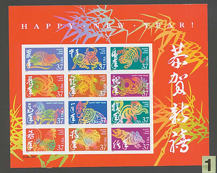 The US Postal Service released on January 6 a double pane of twelve stamps, shown in figure one, which unites “The Year of the Rooster,” with all the previous US Chinese New Year stamps of the cycle that began in 1992.
