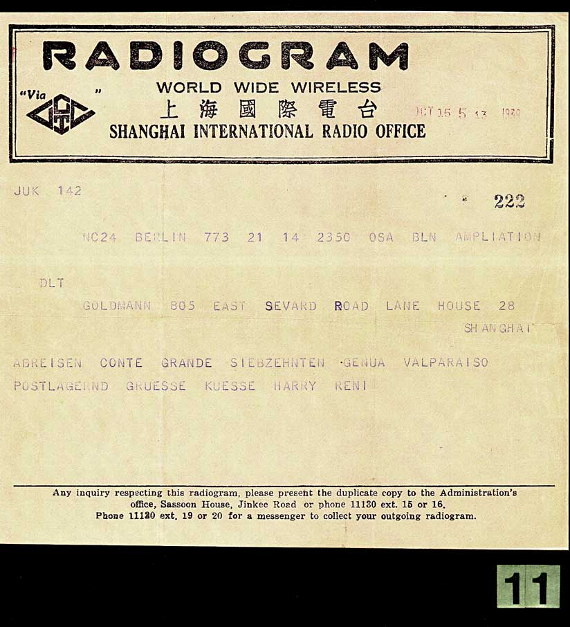 also carried Jewish passengers from Europe to Shanghai. It is shown in