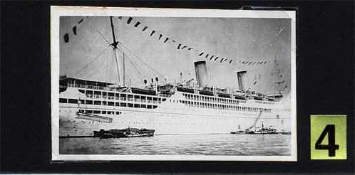 four shows the Conte Verde in Colombo, docked at sea, away from the