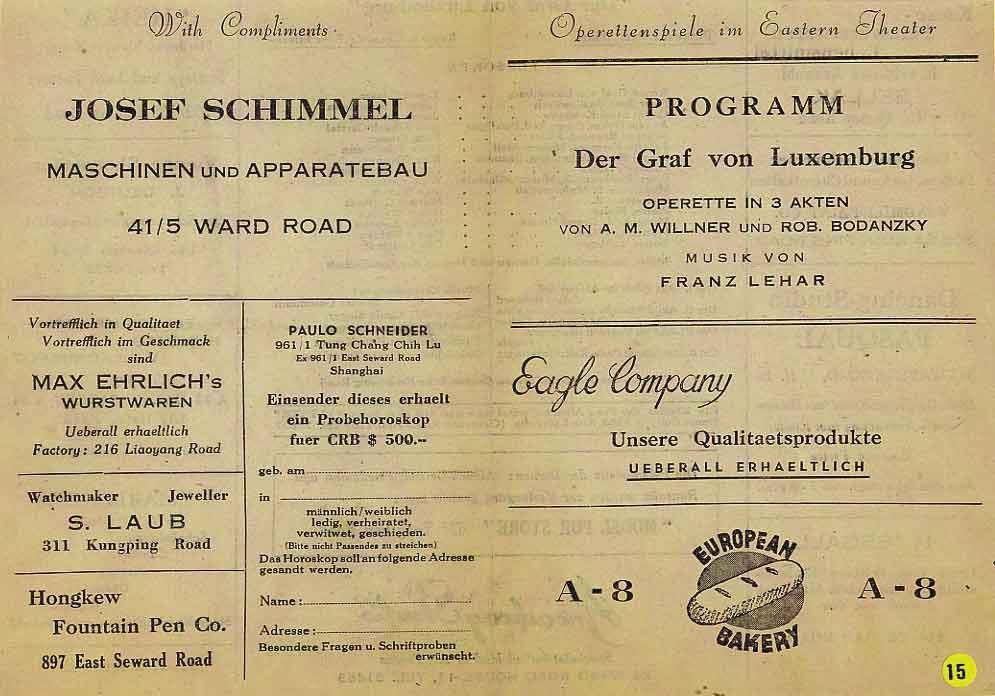 Shanghai refugees have also enjoyed many operetta